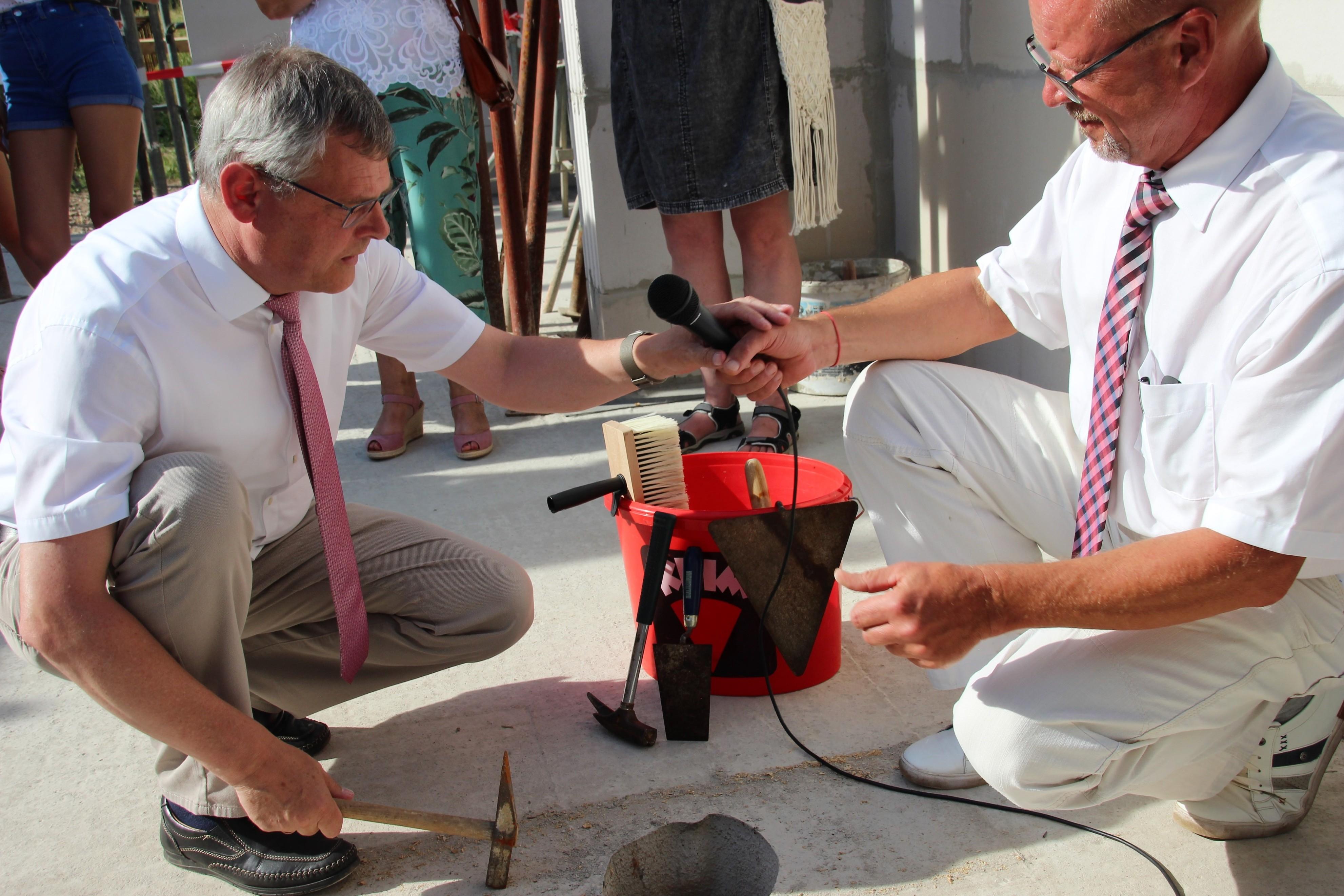 Bezirksevangelist Ralf Wilhelmi, der bei dem Bauvorhaben als Architekt und Vertreter des Bauherren fungiert, füllte anschließend die Kupferhülse mit Bauunterlagen, einem Bauablaufplan und dem Genehmigungsbescheid sowie mit der lokalen Tageszeitung und aktuellen Münzen. Bei der Zeremonie der Grundsteinlegung galten die drei Hammerschläge des Apostel: