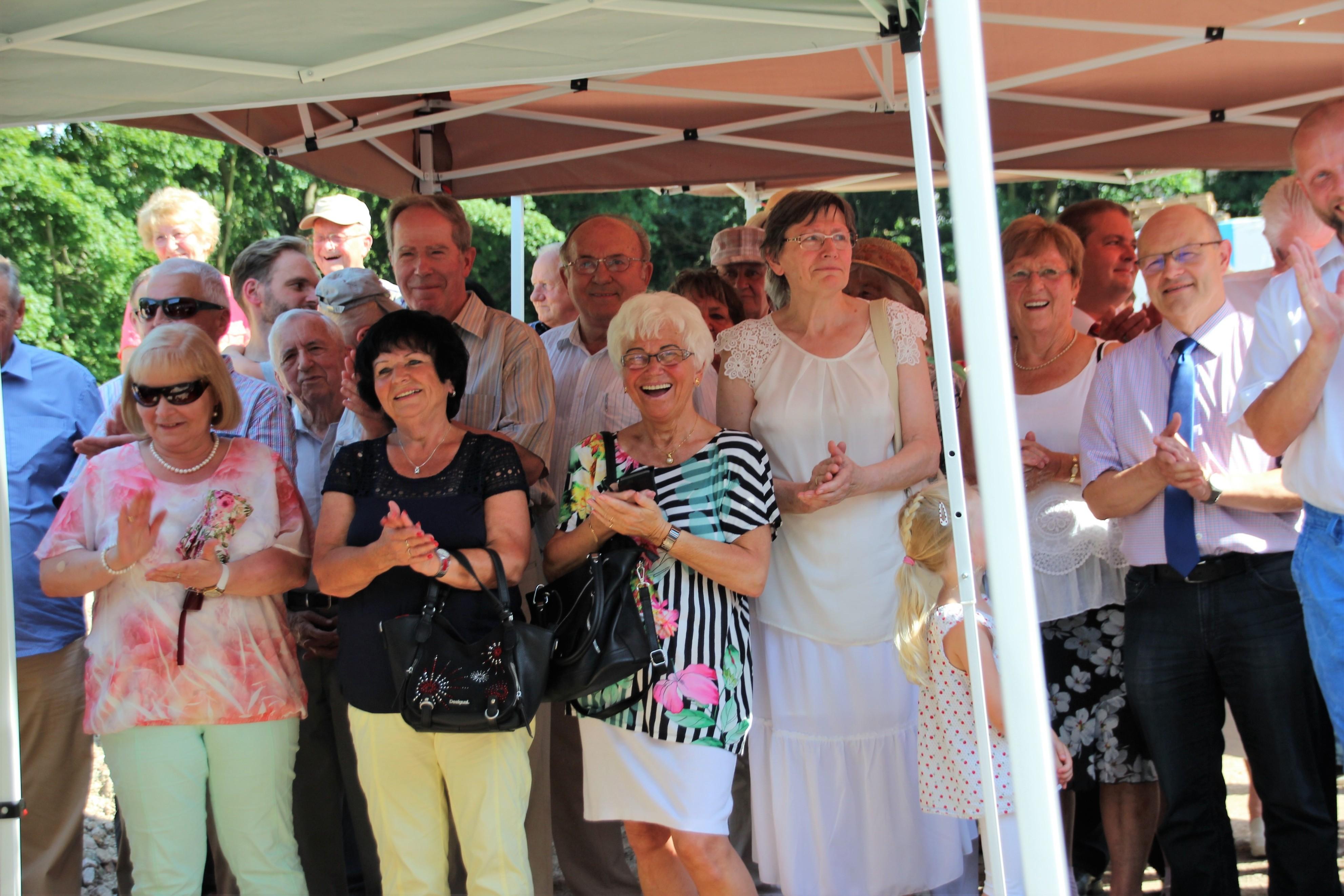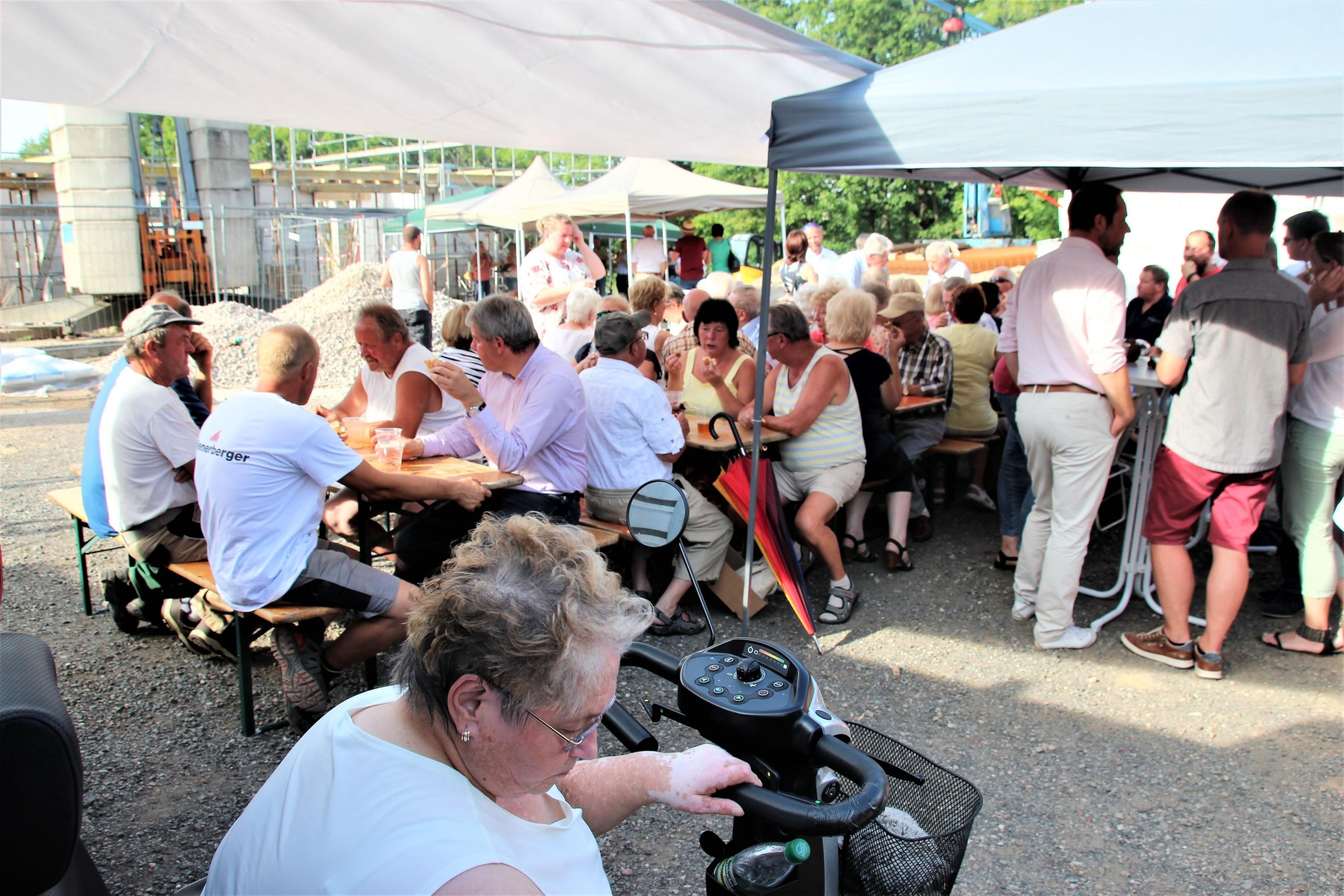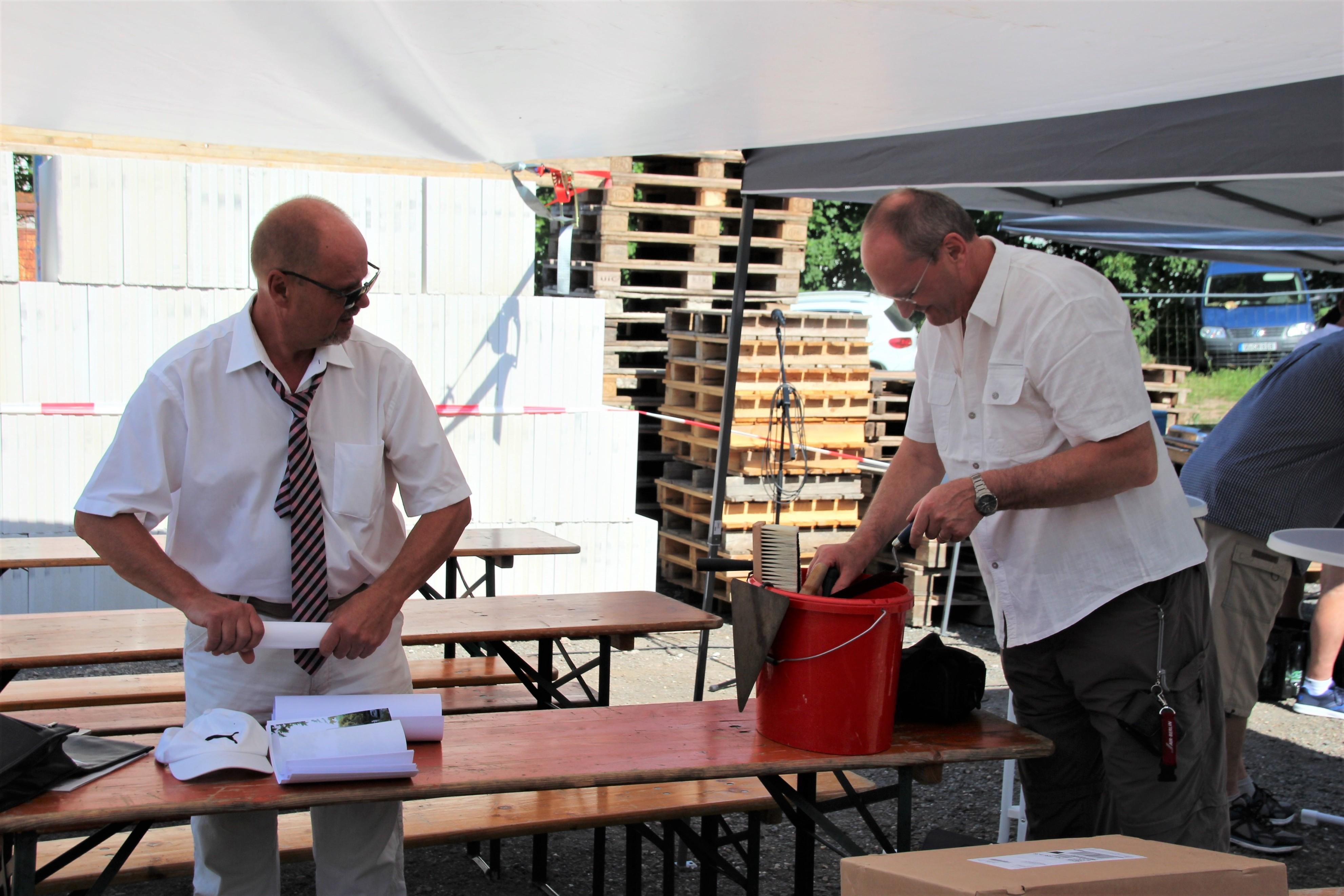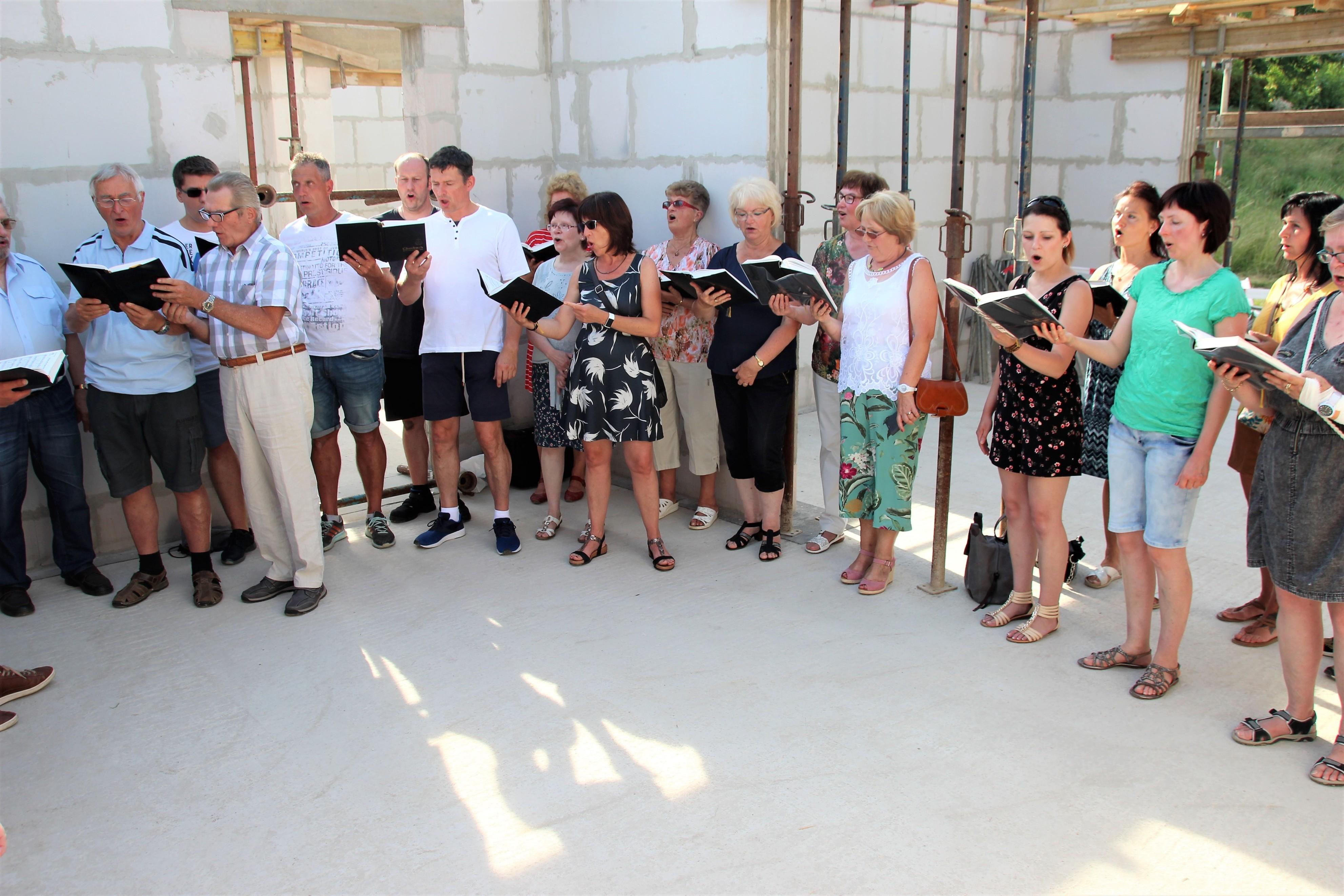 Mit gekonnten Handgriffen beim Umgang mit der Maurerkelle verschloss der Apostel die Öffnung für den Grundstein. Der Gemeindechor und eine Bläsergruppe rundeten diesen Festakt musikalisch ab. Im anschließenden Beisammensein mit den Gemeindemitgliedern und allen Ehrengästen, darunter auch Apostel i. R. Rolf Wosnitzka sowie Vertreter des Kirchenbezirkes Plauen, wurden bei hochsommerlichen Temperaturen die zahlreichen Schattenplätze gesucht sowie Hunger und Durst gestillt.