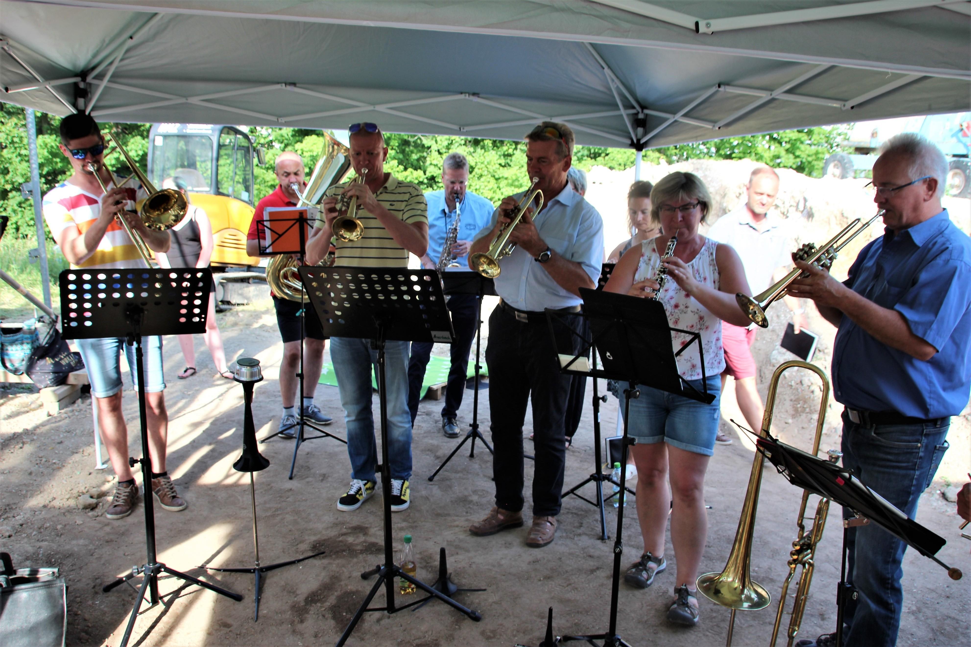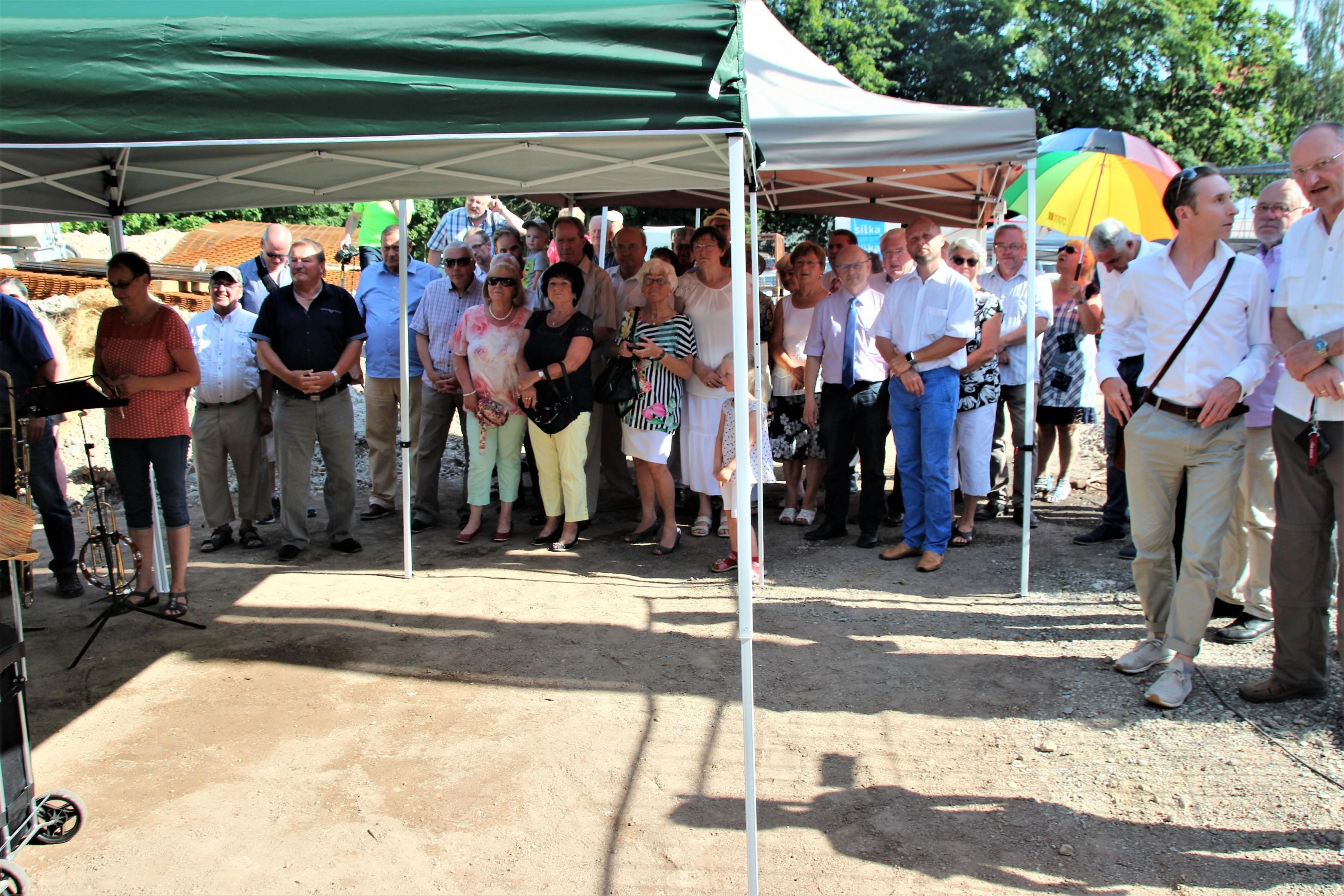 Mit gekonnten Handgriffen beim Umgang mit der Maurerkelle verschloss der Apostel die Öffnung für den Grundstein. Der Gemeindechor und eine Bläsergruppe rundeten  diesen Festakt musikalisch ab. Im anschließenden Beisammensein mit den Gemeindemitgliedern und allen Ehrengästen, darunter auch Apostel i. R. Rolf Wosnitzka sowie Vertreter des Kirchenbezirkes Plauen, wurden bei hochsommerlichen Temperaturen  die zahlreichen Schattenplätze gesucht sowie Hunger und Durst gestillt.