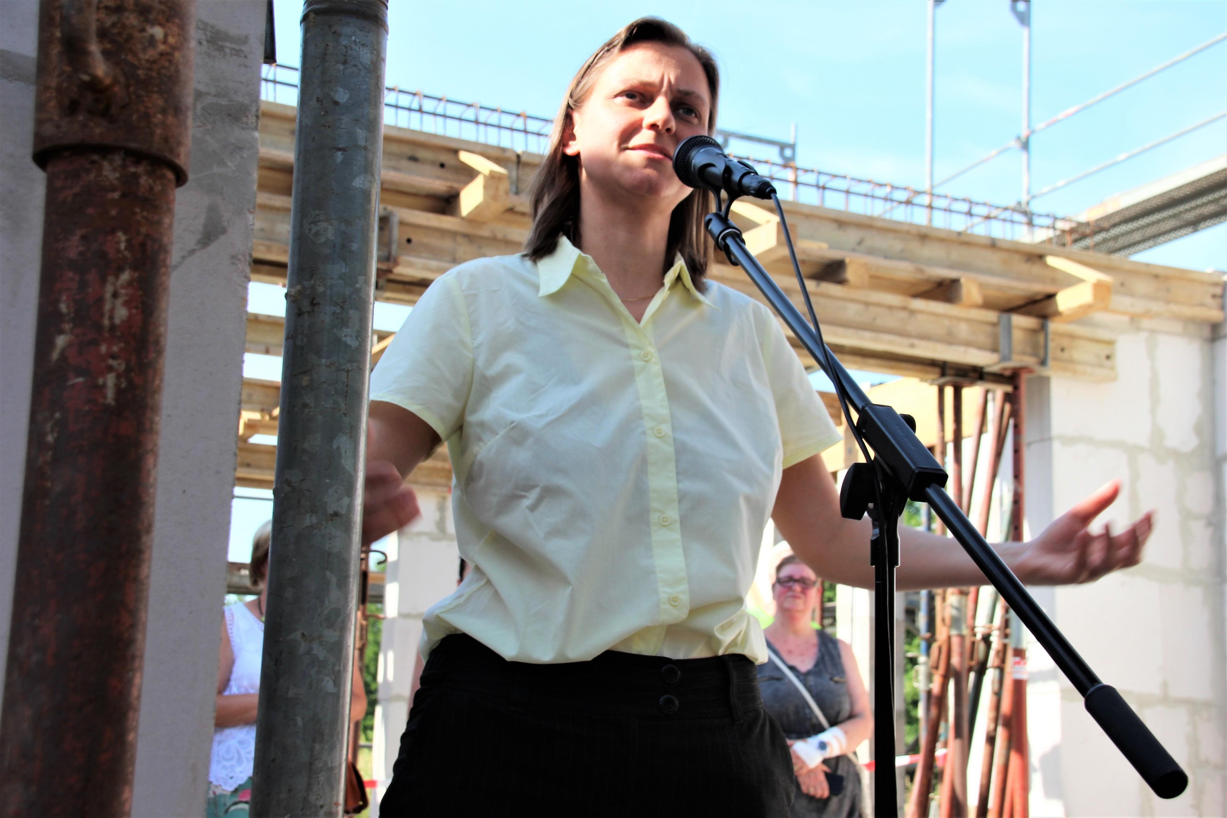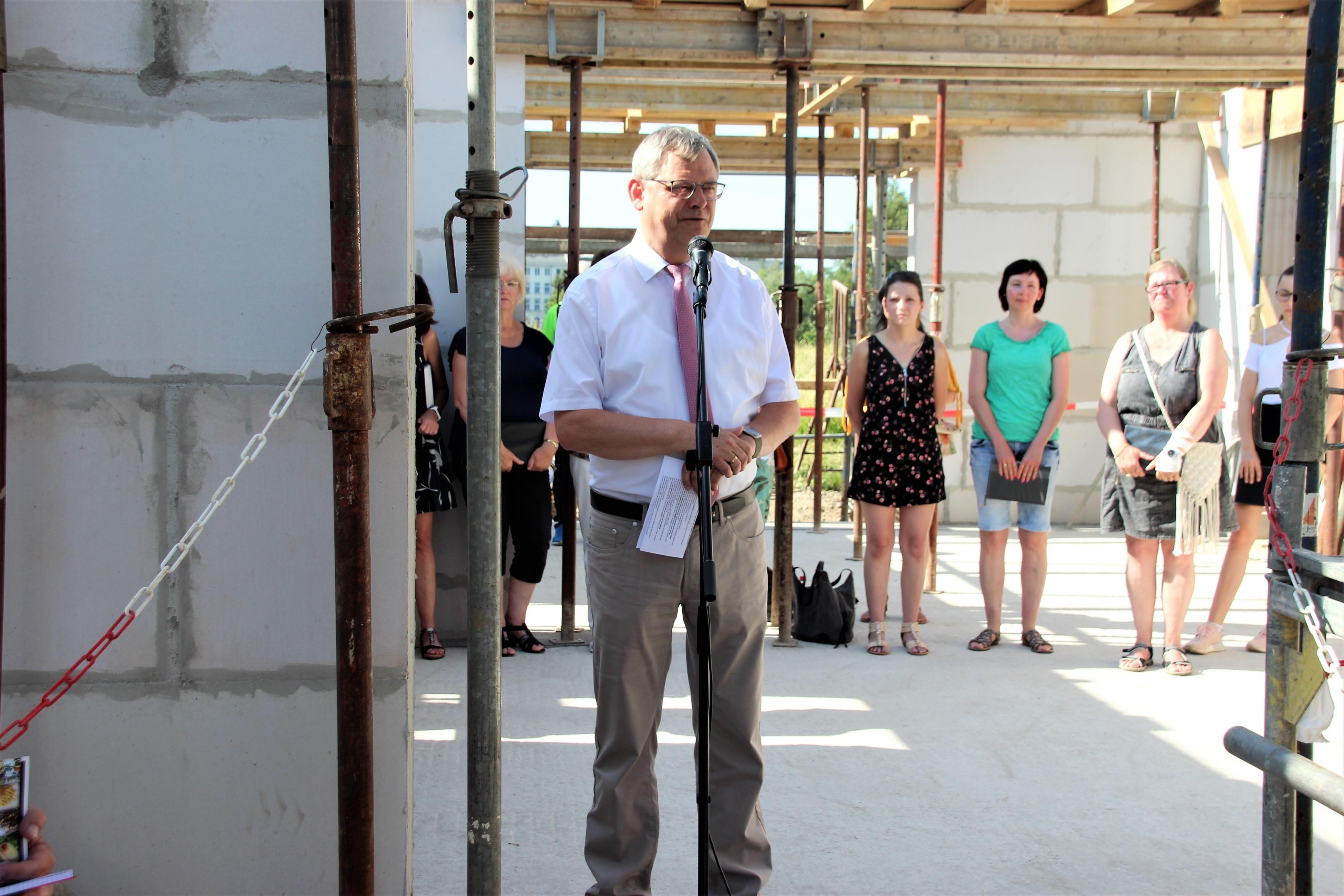 Mit einem bewegenden Wunsch an die neuapostolische Gemeinde nach guter Nachbarschaft und das Erleben-dürfen: „Hier wohnt Gott und hier hat Gott mitgebaut“ endete das Grußwort der Pfarrerin Dr. Schmutzler von der Ev.-luth. Ortsgemeinde. St. Laurentius. Im Blick auf das ökumenische Miteinander betonte sie, dass wir ein gemeinsames Fundament in Jesus Christus haben, und dass alle Christen dieses in den Mittelpunkt rücken und Nebensächliches weniger betonen sollten.  Auch der Gemeindeälteste der Ev.-Freikirchlichen Gemeinschaft, Herr Seidel sprach ein Grußwort. Dabei griff er die bisherigen Aussagen von den lebendigen Steinen, die das Gemeindeleben, aber auch das ökumenische Miteinander ausmachen, auf.