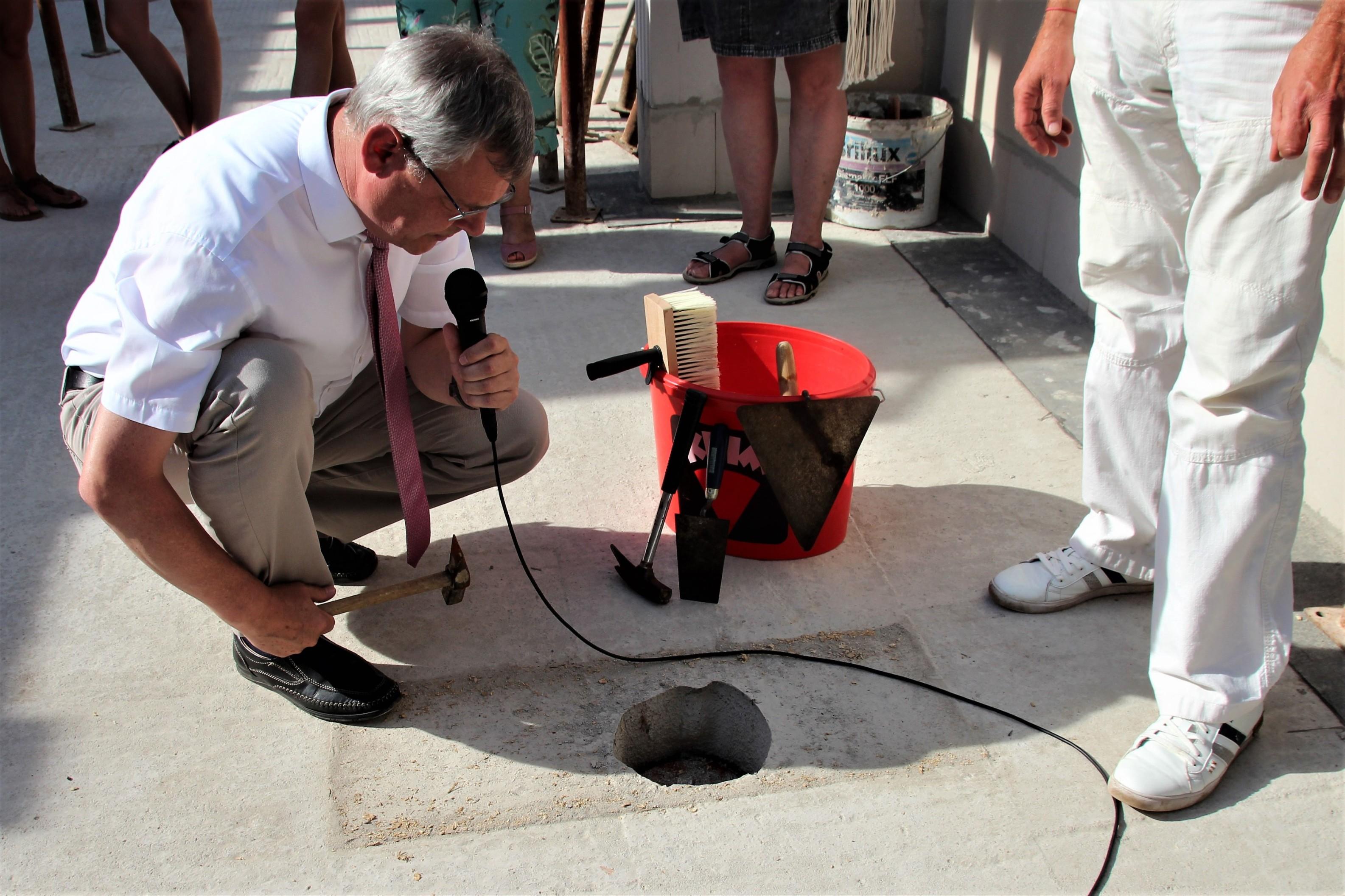 Bezirksevangelist Ralf Wilhelmi, der bei dem Bauvorhaben als Architekt und Vertreter des Bauherren fungiert, füllte anschließend die Kupferhülse mit Bauunterlagen, einem Bauablaufplan und dem Genehmigungsbescheid sowie mit der lokalen Tageszeitung und aktuellen Münzen. Bei der Zeremonie der Grundsteinlegung galten die drei Hammerschläge des Apostel: