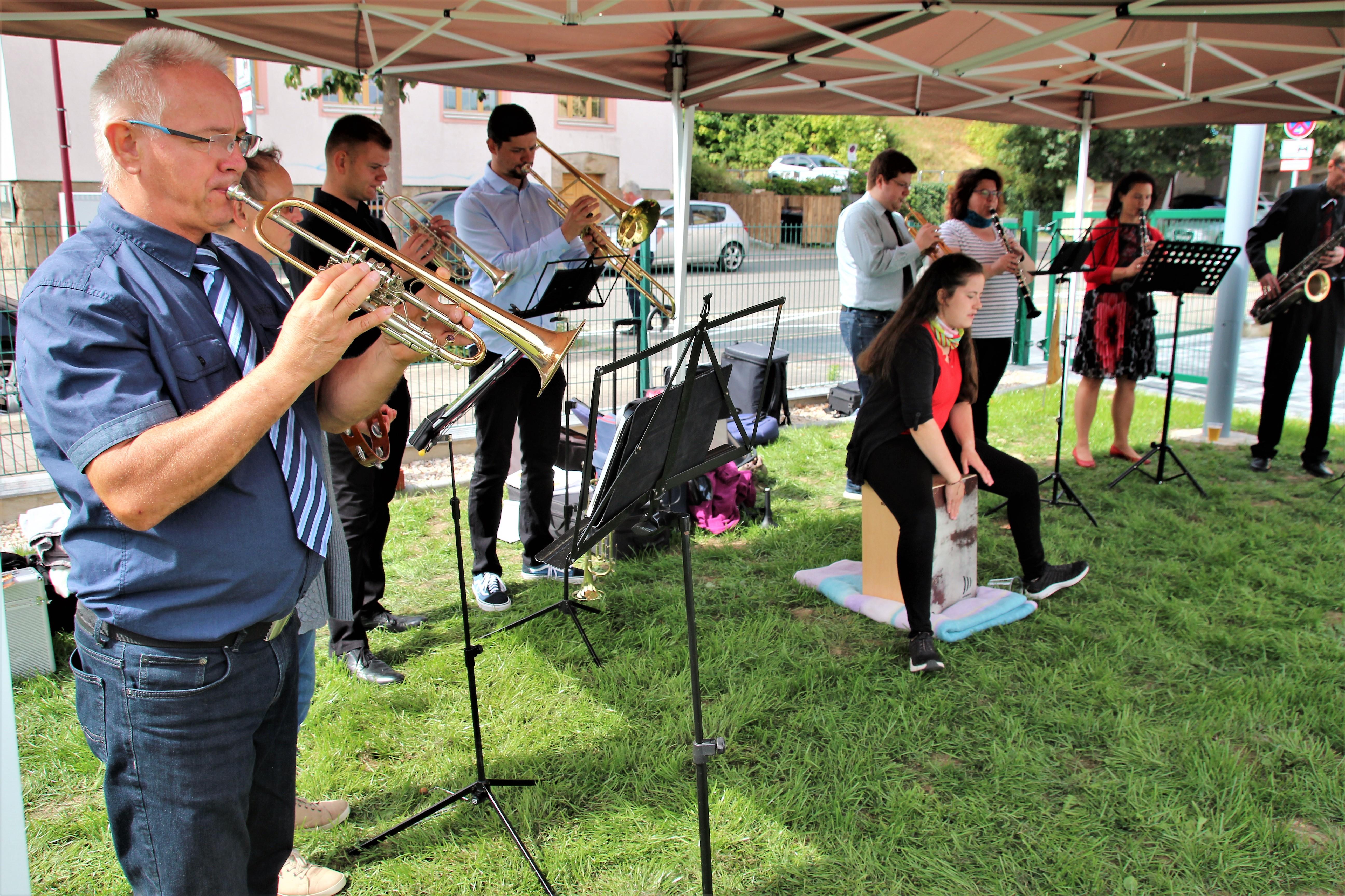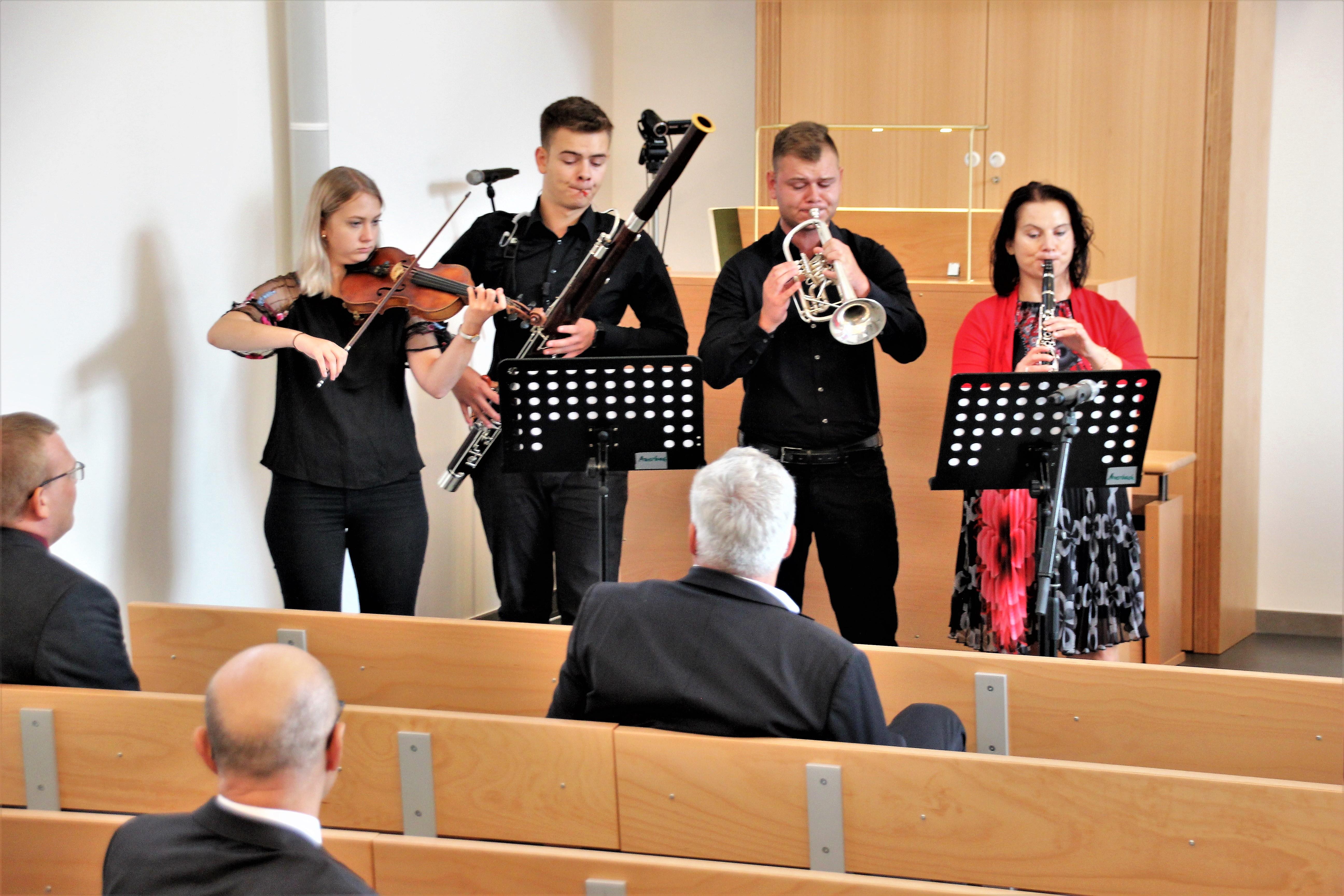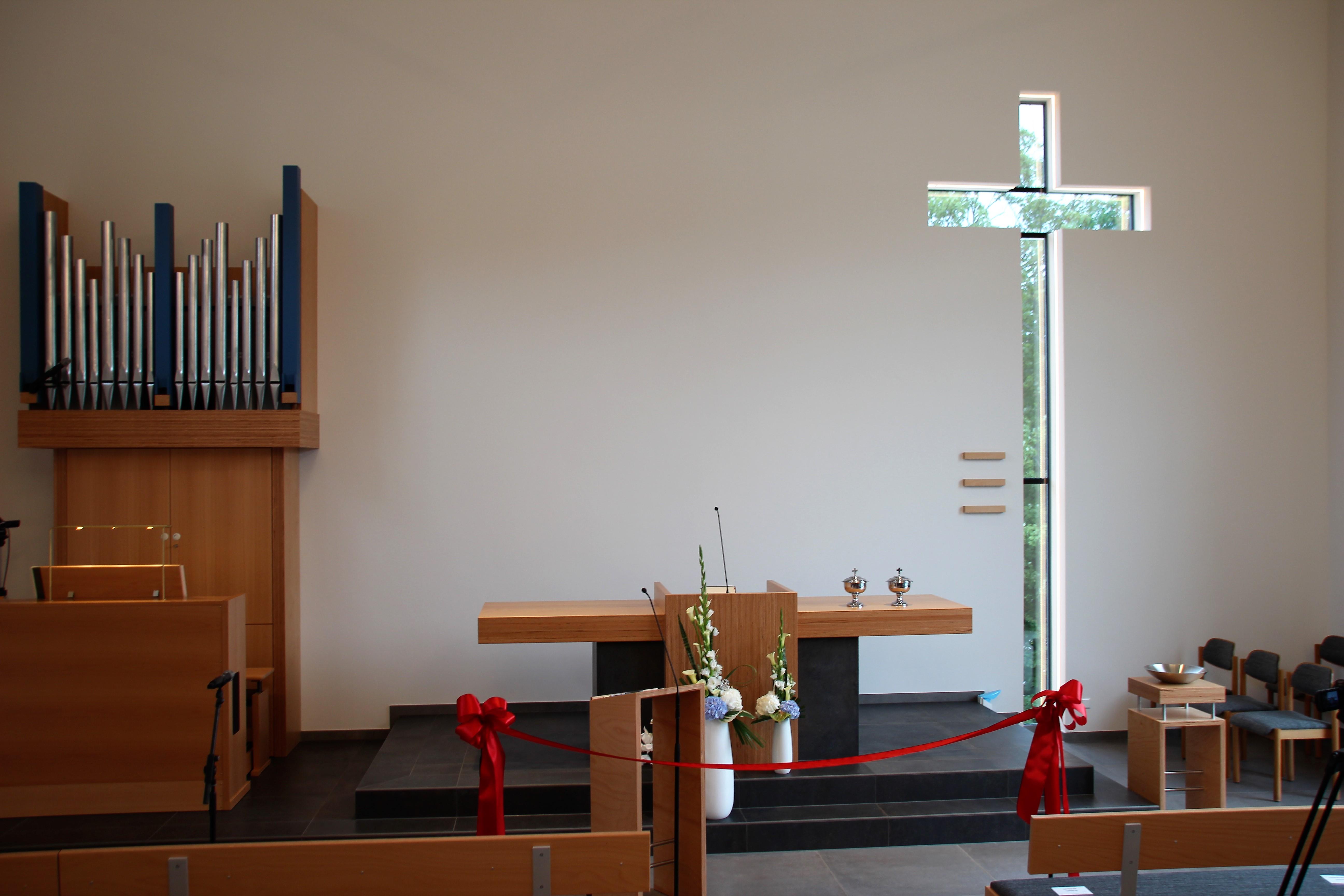 Neben den musikalischen Beiträgen der zur Gemeinde gehörenden Familie Fohlert ließ der Orgelbauer Michael Friedel von der kircheneigenen Orgelwerkstatt die neue, digitale Pfeifenorgel in ihrer Klangvielfalt erklingen und wies auf die zentrale Bedeutung der Orgel für die Mitgestaltung der Gottesdienste und das musikalische Wirken darüber hinaus hin. Diese Orgel ist kein spektakuläres Instrument, hat aber viel im Verborgenen. Das hörte man schon anhand der wenigen Klängen seines Anspielens.