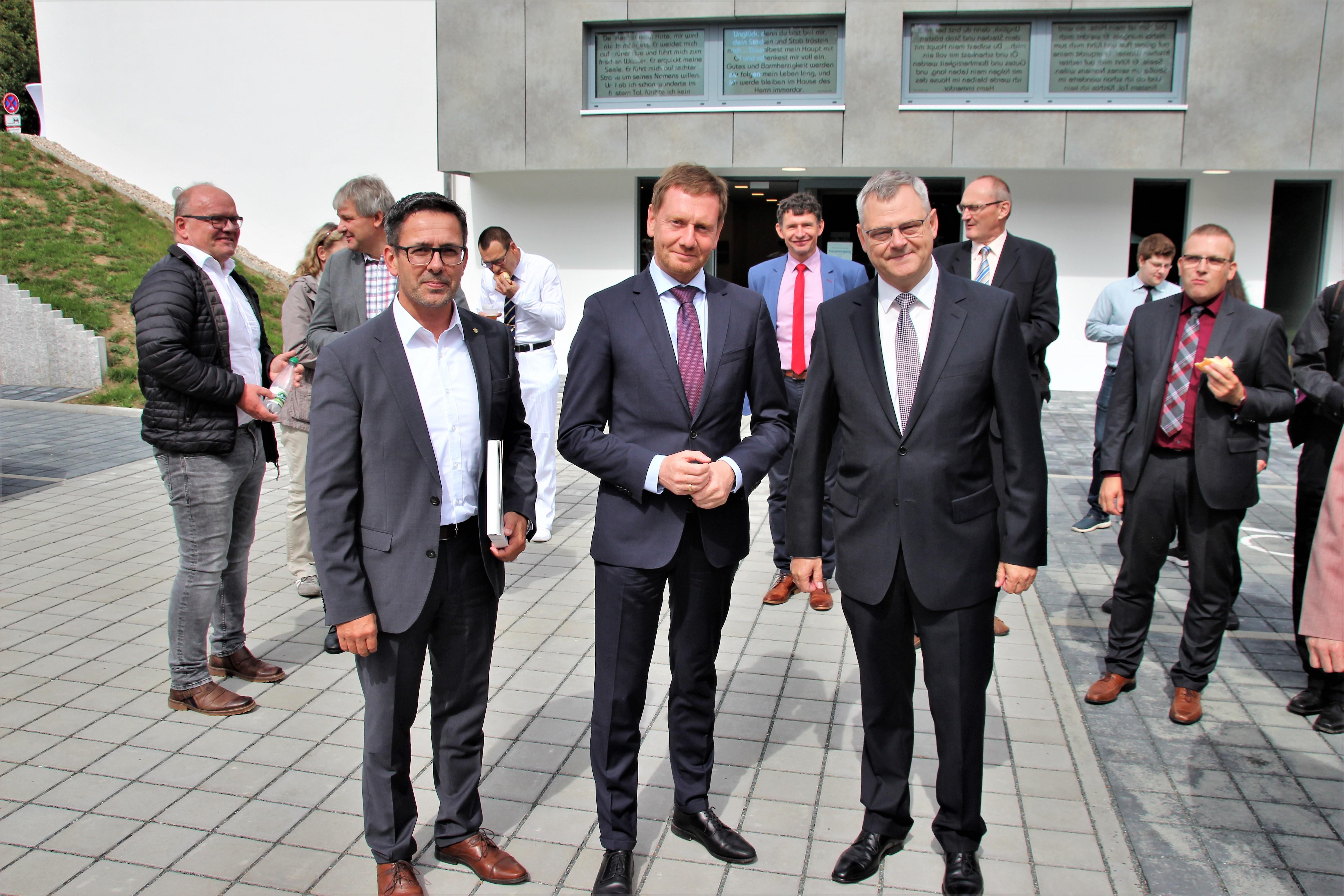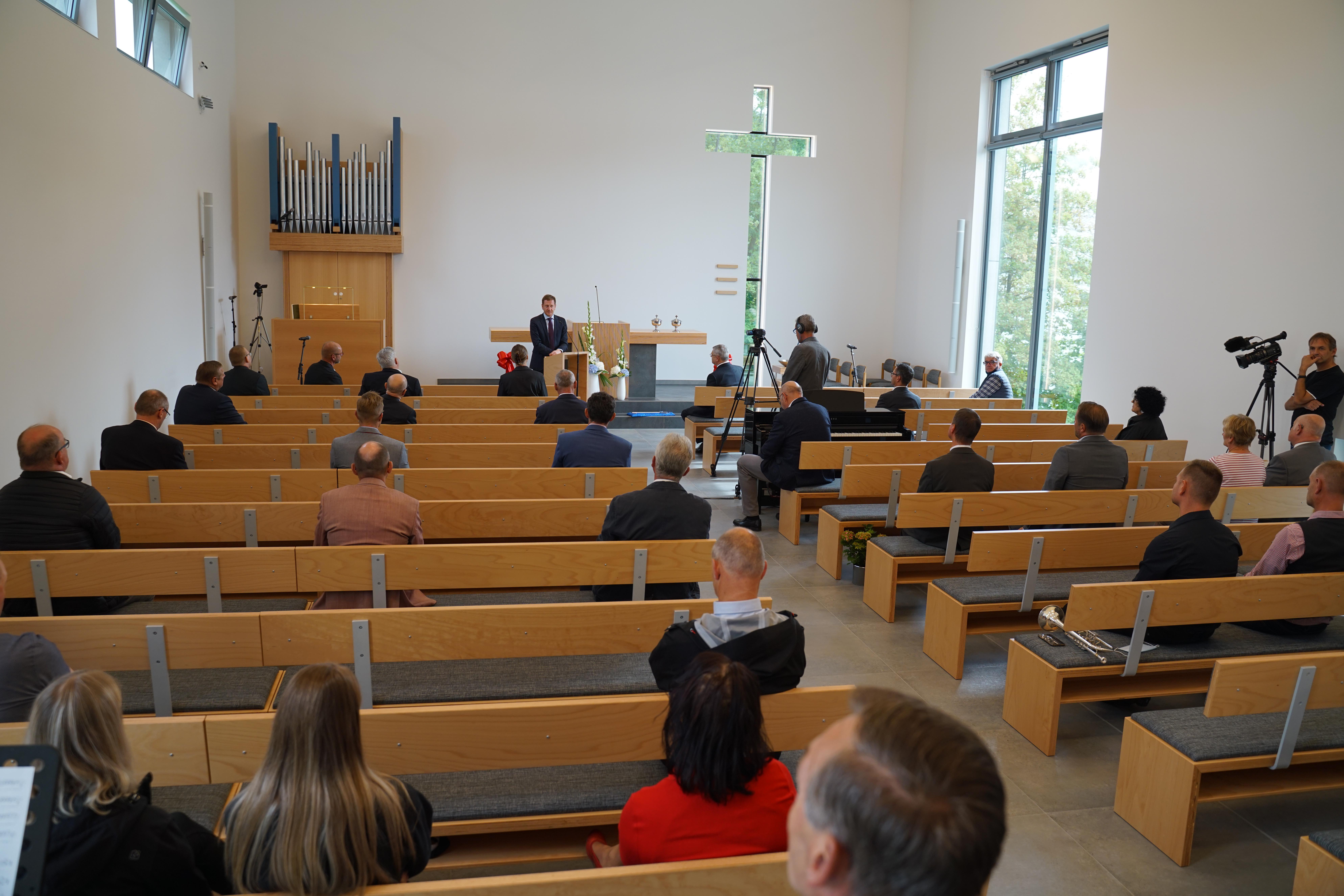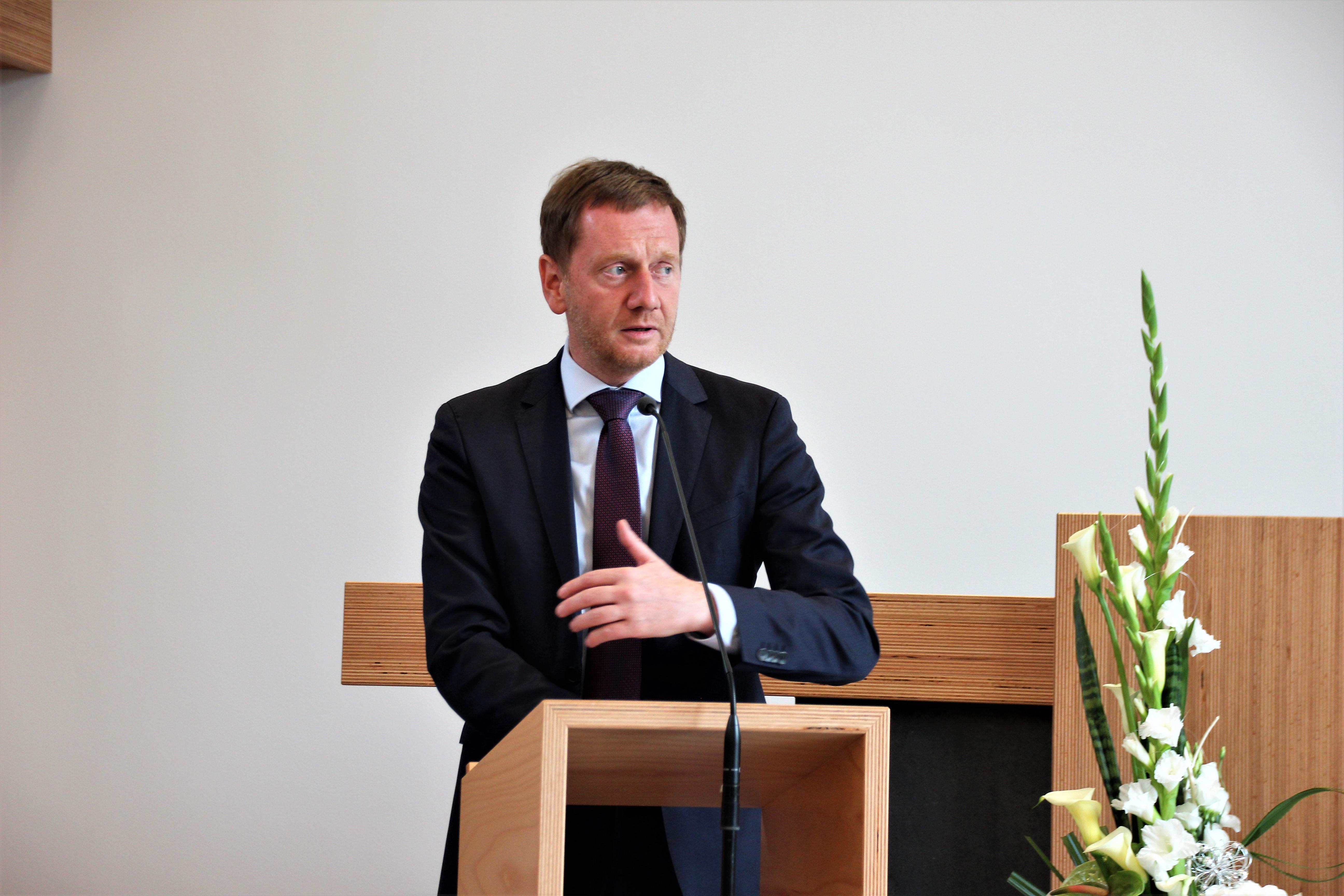 Damit drückte der Ministerpräsident u.a. aus, dass er von diesem gelungenen Bau, den gut gepolsterten Bankreihen und der Kirche angetan ist. In seiner Grußbotschaft war ihm besonders die seitens der Verfassung Sachsens und des Grundgesetzes ermöglichte Religionsfreiheit und das mögliche religiöse Leben wichtig. Aus eigenen Erfahrungen haben ihm sein Glaube und die damit verbundene Wertevermittlung im Leben geholfen. Er wünschte der Gemeinde, dass sie Verantwortung in der Region und den Mitmenschen gegenüber, verbunden mit einer aktiven Jugendarbeit, übernehmen kann.