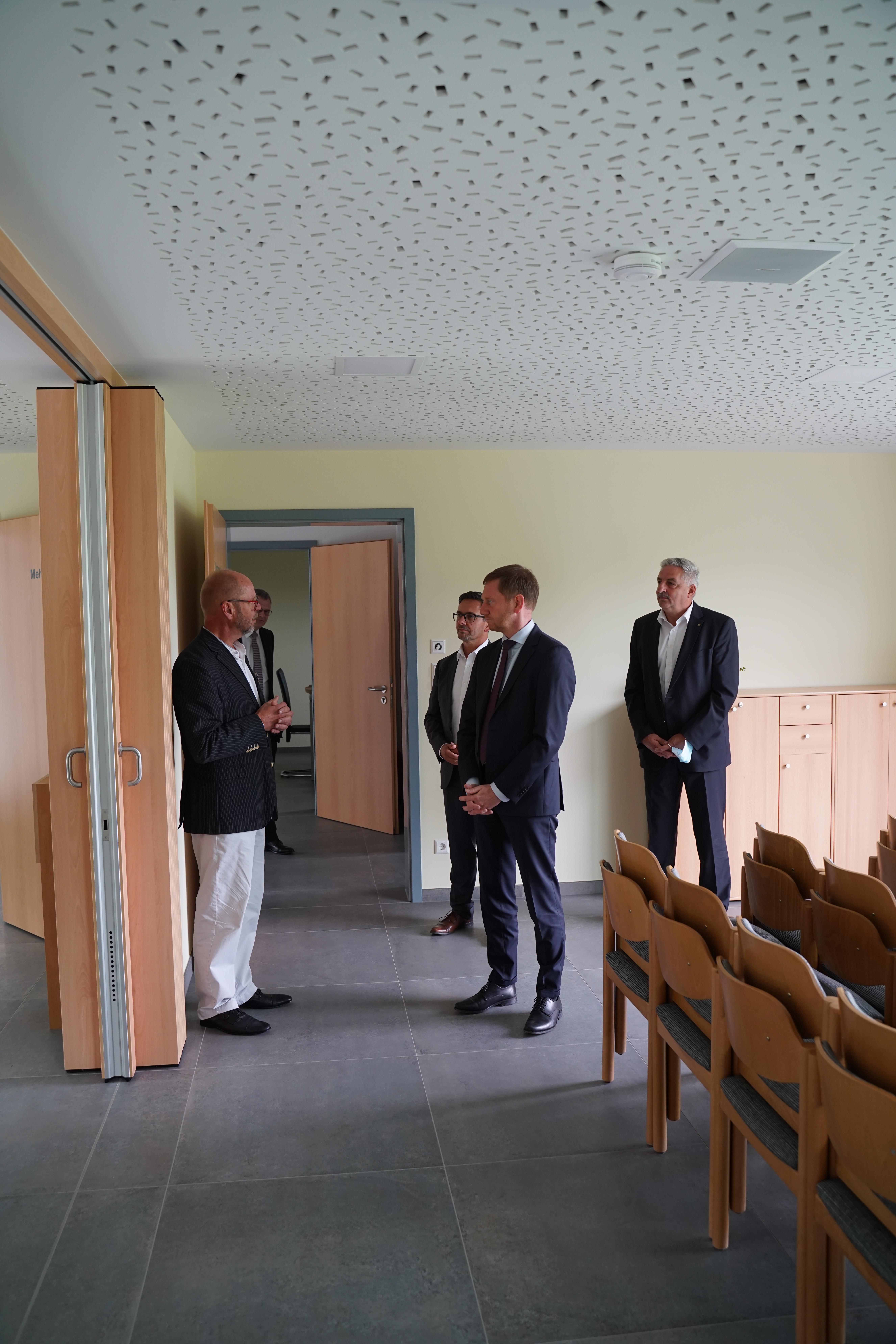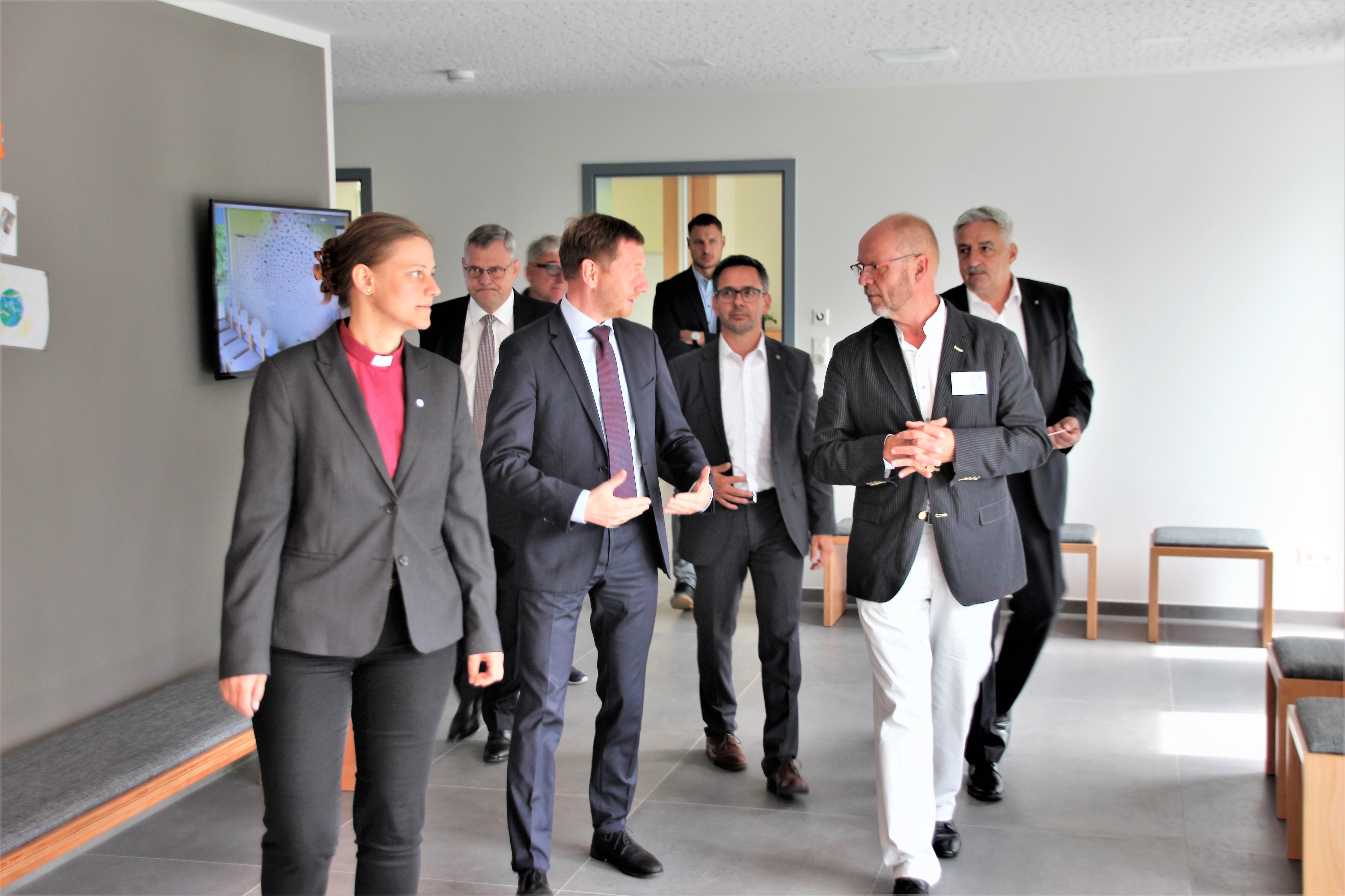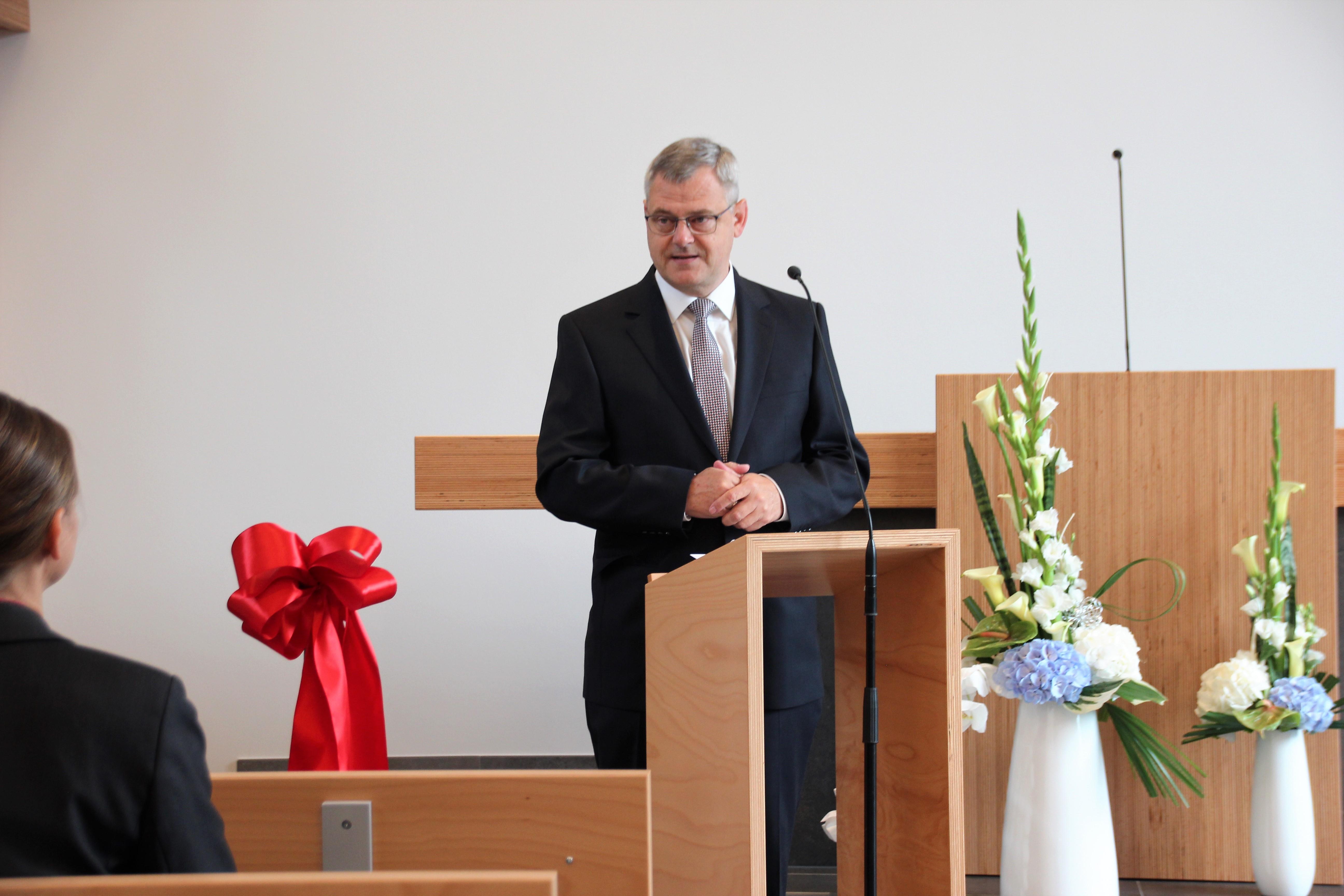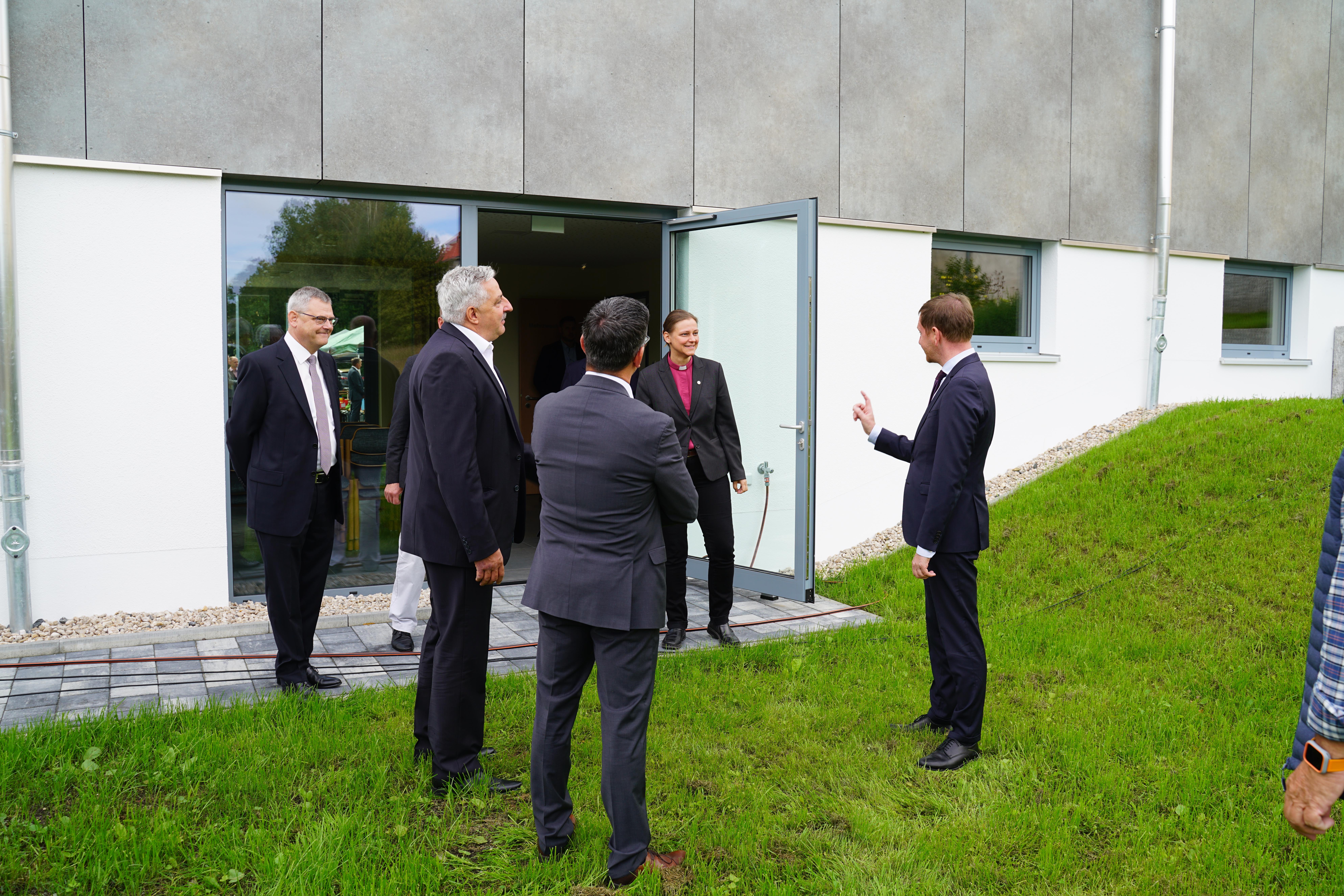 Damit drückte der Ministerpräsident u.a. aus, dass er von diesem gelungenen Bau, den gut gepolsterten Bankreihen und der Kirche angetan ist. In seiner Grußbotschaft war ihm besonders die seitens der Verfassung Sachsens und des Grundgesetzes ermöglichte Religionsfreiheit und das mögliche religiöse Leben wichtig. Aus eigenen Erfahrungen haben ihm sein Glaube und die damit verbundene Wertevermittlung im Leben geholfen. Er wünschte der Gemeinde, dass sie Verantwortung in der Region und den Mitmenschen gegenüber, verbunden mit einer aktiven Jugendarbeit, übernehmen kann.