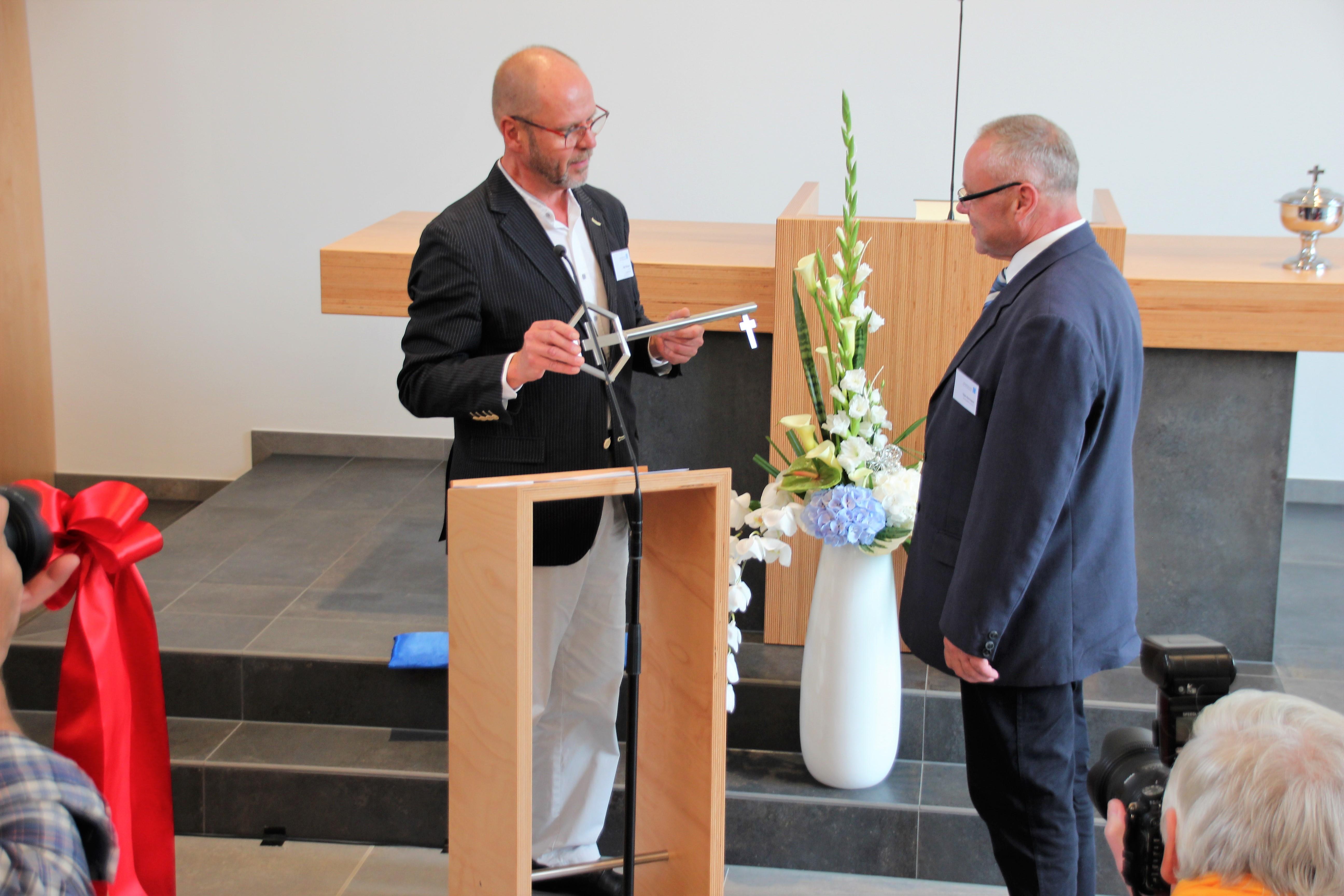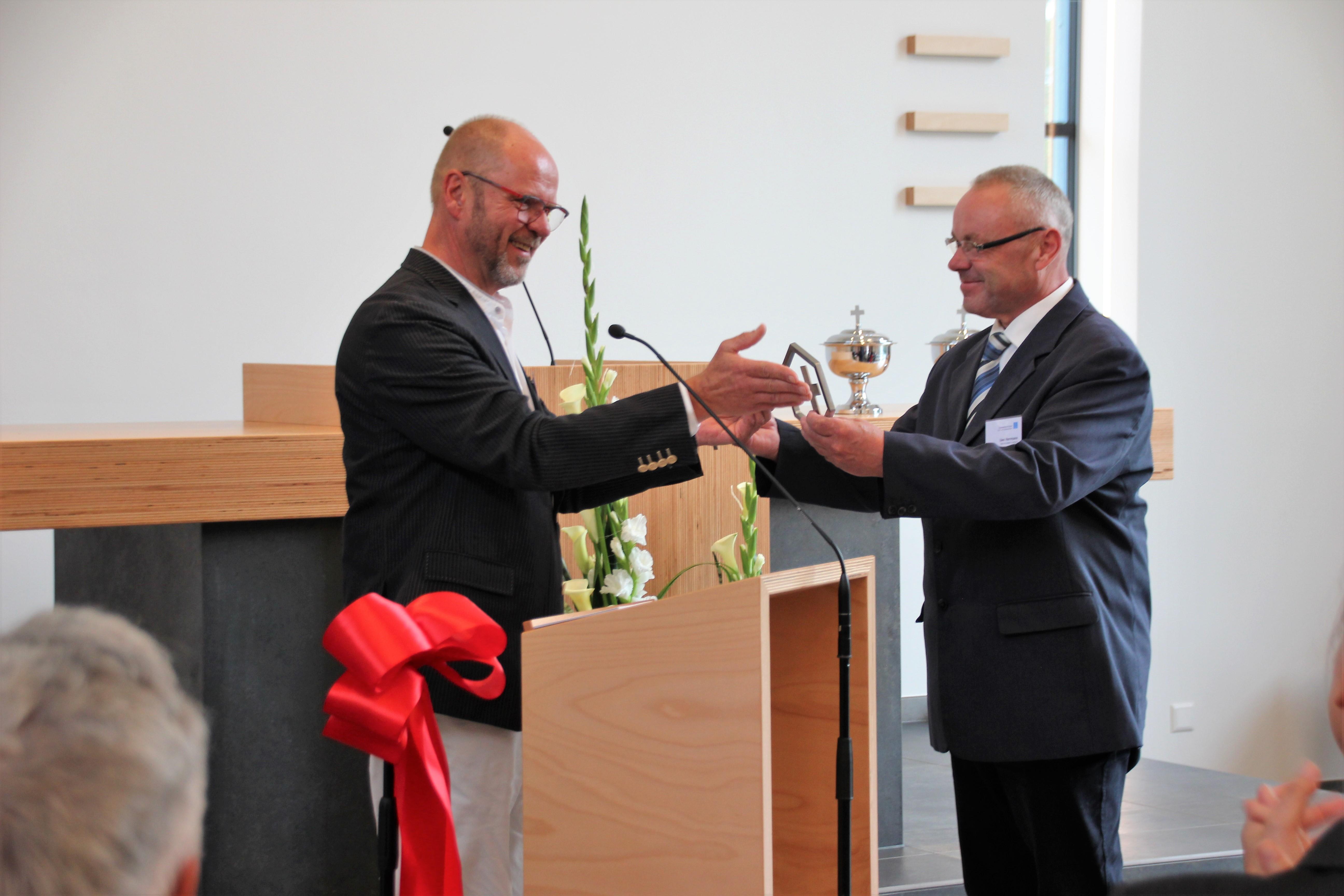 In der Feierstunde bedankte sich Apostel Ralph Wittich und der Architekt Ralf Wilhelmi bei dem dreieinigen Gott dafür, dass diese neue Kirche ohne Arbeitsunfälle gebaut werden konnte. Ein großer Dank galt auch der Kirchenleitung, den Baufirmen, die ein harmonisches Baugeschehen mitgestalteten, sowie den zuständigen Behörden. Nicht zuletzt galt der Dank auch für die ermöglichte kircheninterne Finanzierung durch die Gebietskirche Nord-und Ostdeutschland und der Förderung im Verbund mehrerer Gebietskirchen. Basis hierfür sind immer die freiwilligen Opfer und Spenden der Kirchenmitglieder.
